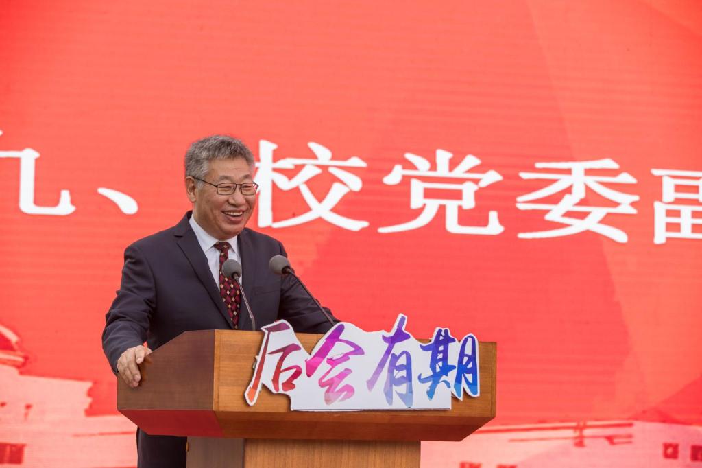 校党委副书记冯正玉为同学们送上精彩的即兴毕业致辞。他首先代表学校表达了对同学们顺利毕业和取得学位的祝贺。冯书记表示,学生是学校最宝贵的财富、校友是学校最珍贵的资源。冯书记寄语毕业生们,希望同学们毕业后在工作和生活中拥有“英雄气、书生气、侠者气”。冯书记的致辞语重心长,思想深邃,饱含哲理;谆谆教诲有如夏日清风,清透心田,直击心灵,给以了深刻的思想启迪,展现了独特的魅力,赢得了在场所有师生的热烈掌声。
